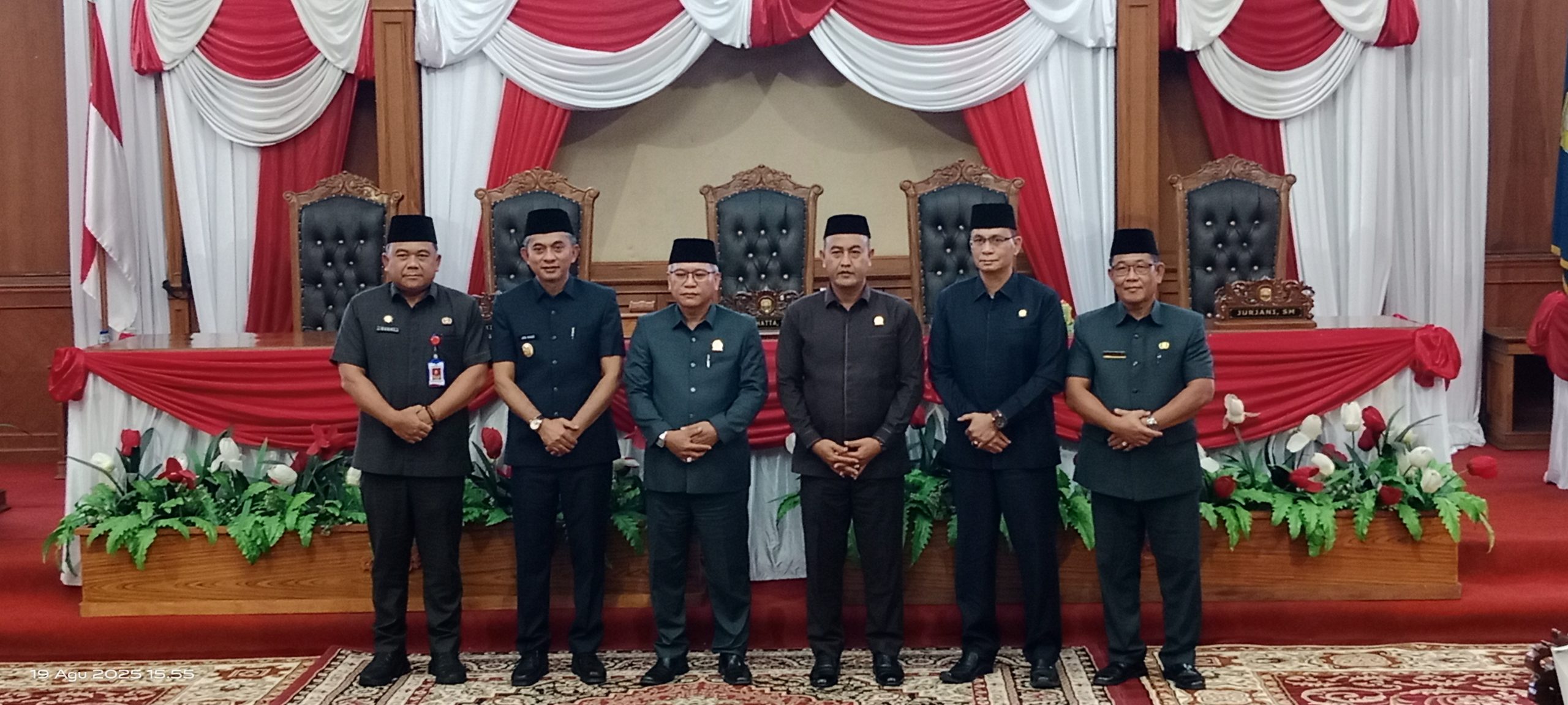 GEMAMUJA.COM/Muarojambi – Rapat Paripurna Dewan Perwakilan Rakyat Daerah Kabupaten Muaro Jambi mendengarkan Jawaban Bupati Kabupaten Muaro Jambi Terhadap Pandangan Umum Fraksi-fraksi DPRD Kabupaten Muaro Jambi Terhadap Ranperda APBD Perubahan Tahun Anggaran 2025.Rapat Dilaksanakan Diruang Rapat Utama DPRD Muaro Jambi.Selasa (19/08/2025)