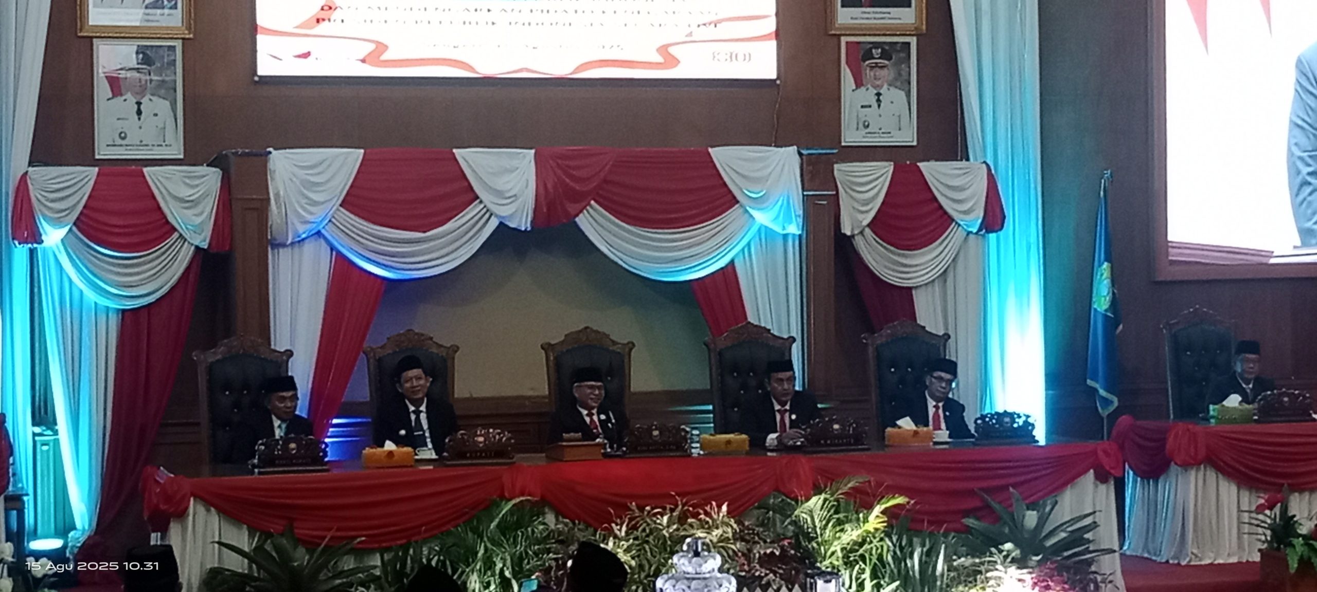 Lintastimur.com – Muaro Jambi – Dewan Perwakilan Rakyat Daerah Kabupaten Muaro Jambi Menggelar Rapat Paripurna Dalam Rangka Memperingati Hari Ulang Tahun Ke 80 Kemerdekaan Republik Indonesia Dan Mendengarkan Pidato Kenegaraan Presiden Republik Indonesia Secara Live.Kegiatan Dilaksanakan Diruang Rapat Utama DPRD Muaro Jambi.Jum’at (15/08/2025)