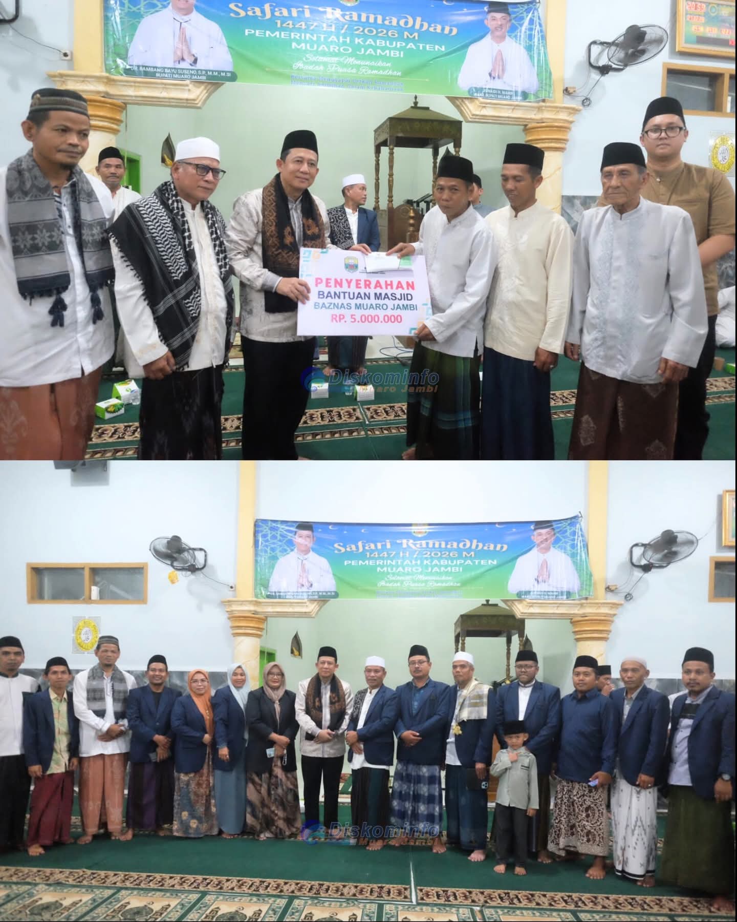 Dalam acara Safari, disalurkan bantuan Rp 10 juta untuk Masjid Jami’atul Islamiyah dari Baznas Kabupaten Muaro Jambi dan Bank Jambi Kabupaten Muaro Jambi. (an)